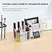 【Versatile Cosmetic Organizer with 2 Dividers】9 compartment beauty storage organizer with 2 removable three-slot dividers, 2 dividers can be put into different positions. It can hold a variety of sizes of cosmetic brush, lip glosses. The clear cosmetic caddy also use as a pen and supply organizer on desk.