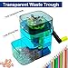 CONVENIENT SHARPENING: Extra-large waste bin holds more shavings for less frequent emptying; Translucent body allows you to see when the container is full