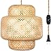 【Plug in Chandelier with Handmade Bamboo】 The hand-made bamboo lamp shade with double-layer design blends vintage style and modern styles, and complements your indoor and outdoor decoration. This rattan chandelier is the best choice for you to decorate your home and also a unique and practical gift for relatives and friends.