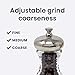 Customizable grinding: Professional quality pepper grinder is fully adjustable from fine to coarse, able to provide whatever grind size your recipe book calls for. Simply loosen top nut for coarse particles & tighten for fine.