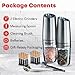 โ [One Grinder Double Bin]: The electric salt and pepper shakers has a double bin design with a total capacity of 150mL and 75mL in each bin, allowing it to hold two different spices at the same time. With this innovative design, you no longer need multiple machines to add different spices. 2 in 1 salt and pepper grinder set electric makes meal preparation more efficient and less time-consuming. With the fashionable gift box, it is the great housewarming gift for new house for friends or family