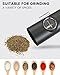 Stepless Adjustable Coarseness: Twist the knob of salt pepper grinder set to set coarseness from coarse to extra-fine, suitable for most solid seasonings, such as sea salt, Pink Himalayan salt, black peppercorn, white pepper and so on.