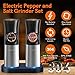 【Grinder Faster and Better】The salt pepper grinder set adopts latest high efficient and powerful motor ,delivering super speed and creating a 0.2 oz fine spice in 1 min, similar grinders can only make 0.1oz, increasing the speed up to 100%.