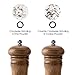 Wood Pepper Mill: Carbon steel precision mechanism grinds peppercorn with 6 adjustable grind levels
