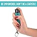 PROTECTION AGAINST MULTIPLE THREATS: Small ½ oz pepper gel spray has an impressive 25 bursts deployed in a powerful stream of gel to decrease wind blowback; Includes Quick Release Key Ring for immediate access even if your keys are in a lock