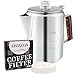 GREAT COFFEE: Our stainless-steel percolator coffee pot delivers six cups of hot, fresh coffee at your home or campsite The interior stainless-steel basket keeps grounds fresh Enjoy coffee the old-fashioned way, with an improved design from Stanley
