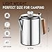 ☕【NO ALUMINUM & DURABLE】All metal - inside and out is made of 100% high-quality 304 food grade stainless steel for excellent resistance to corrosion. Ergonomic&heat resistant design hardwood handle increase the comfort of pouring and filling. Rugged construction withstands rigors of drops and knocks while on camping.