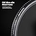 【Slim Metal Frame】 Ultra-slim aluminum alloy frame with an anti-glare black matte finish to prevent a vignette effect on wide-angle lenses. Straight knurls ensure smooth rotation between ND2 (min) and ND32 (max)