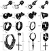 Improved Packaging: This set includes 16 pairs of black earrings and ear studs in a lovely box, providing you with 8 pairs of different shapes of black ear studs (including 3 pairs of CZ ear studs), 5 pairs of circle earring hoops, and 3 pairs of dangle-hinged hoop earrings. With a wide variety of options, these earrings are suitable for both men and women, giving you more choices to wear.