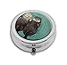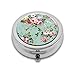 Decorative snap open clasp offers easy organization Case Box Silver Round Case pill box for purse.