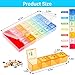 Real Large Capacity : 💊Each grid can contain about 18 fish oil pills or large vitamin tablets,the Measured Product Size is 10.2 x5.3 x1.2 inches.💊7 colors are used to distinguish seven days for a week, and each detachable box has 4 grids that can be used,You can put enough supplements or prescription pills in them.