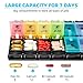 Lid stay open for easy filling - The compartments of our pill box organizer open easily and can be fixed when opened. This will help you to fill the pills case with medicine
