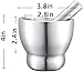 SOLID RUSTPROOF MATERIAL: Both pestle and mortar are made of food grade 18/8 stainless steel. Not only are they rustproof, it is also resistant to damage and corrosion by acidic food. Small compact mortar, about the size of the average palm - whereas one could pick it up with one hand, capacity 250ml