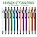 PACKAGE INCLUDES: 12 Stylus pensin a variety of barrel colors with Black ink writing