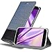 DESIGN : Trendy „Book-Style“ design in Jeans-Look with Fauxleather application. There is no annoying flap or closure so your are able to open and close the case from whichever way you want. Its well-chosen Fauxleather and its luxurious colors make this case ideal for a serious appearance. The flap won´t interrupt you while texting or telephoning. The interior surface of this beautiful flap case is made out of the smooth faux leather to provides extra protection.