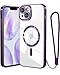 【Unique Design & Comes with Lanyard】 This case is only designed for iPhone 14. While retaining the transparency of the back, the metallic luster are embellished on the edges, camera and magnetic ring, which makes this case so unique. The electroplating process gives this case a shining color that never fades or peels. It also comes with a wrist lanyard that matches the color of the case so you can carry your phone more easily. Perfect for women, girls to show off your unique style.