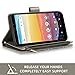 MULTI-FUNCTION PHONE WALLET - RFID theft protection in three card-holder-slots; comfortably carry 3-6 credit-cards plus 5-10 cash bills. Easy-open clasp - open and close your wallet in a snap. Smart, horizontal and vertical kick-stand viewing, fully adjustable for hands-free video calls, reading, or movies anywhere.