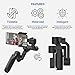 [Be the Professional Director You´ve Always Wanted to Be] From fast-moving actions to sports, live streams and vlogs, documentaries and independent features, the sophisticated design and adaptability of the smartphone gimbal make it a unique production tool. Aside from the modes mentioned above, this tool features the basic zoom/focus control, all pan and tilt tracking/locking modes and a 3 ¼ screw hole for accessories such as a tripod or video light.