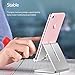 【Stable Base & No-Slip Silicone Pad】An Aluminum Alloy support rod with a weighted base reinforces the stability of the phone stand to avoid shaking. Full-covered silicone pad on the bottom and the bracket to prevent slide and protect your phone from scratches.