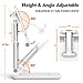 Adjustable Height and Angle: The adjustable phone stand provides you with a comfortable viewing angle, it can be easily adjusted to the (10°~ 45°) angle and it has two levels of height adjustment, the height can be easily adjusted between 6.5 in-7.8 in (1.58 in adjustable range) providing comfortable viewing experience.