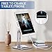 ⭐【 USER-FRIENDLY DESIGN】There is a reserved charging hole convenience for you to charge your devices while using the tablet stand. Whether you place your device vertically or horizontally, it will not cover the screen. You can use the stand for watching movies, online classes, cooking, playing games, and so on.