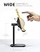 ใAdjustable Height & AngleใCell phone stand holder is in accordance with ergonomic design. The height can be easily adjusted between 2.4 - 5.5 inches, The adjustable angle between 0ยฐ-72ยฐ with comfortable viewing angle which helps to fix your posture and reduce neck & back strain.