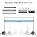 🎁Width and Height(Up to 10 ft. and 9.6 ft.) Adjustability: When using only one top bar the width is 5 ft and when connecting all the width can extend up to 10 ft. The height of the stands can be adjusted using the 3 knobs on each stand up to 9.4 ft.
