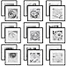 Gallery wall kit includes twelve black square photo frames with removable white mats