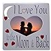 PHOTO FRAME. Heart-shaped photo opening with a loving sentiment, featuring the popular saying "I love you to the moon and back."