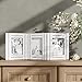 Dimensions - Material: Wood farm house picture frame. Material: Wood/Glass. Color: Whitewashed. Overall frame dimensions: 22.5" x 0.5" x 9.5". Each Frame: 7.5" x 9.5”. Glass: 4.5" x 6.5”. Image size: 5” x 7” Frames. Not for Wall Hanging. Hinged Stand. Vertical orientation.