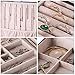 35 COMPARTMENTS JEWELRY BOX: The jewelry case has 12 small compartments for earrings and rings; 9 larger compartments for bracelets or bigger sized earrings; 5 longer slots for necklaces, chains and watches. This sleek jewelry case keeps all types of jewelry pieces handy and separated, beautifully displayed. No longer losing your bling