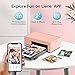 [2X3'' Adhesive Photo Paper] This pink portable photo printer has 50 sheets of Zink adhesive picture paper. You can stick it anywhere by tearing off the back sheet. Print off the pictures with our instant photo printer and attach them to your scrapbook or photo album. Print your favorite patterns and cut them to decorate your storage cabinet, computer case, or refrigerator. Our photo paper has excellent stickiness and remarkable color retention to keep your fond memories fresh.