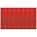 This photo backdrop features an image of school lockers in red color
