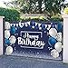 Package content: there is 1 piece of happy birthday sign backdrop, designed in navy blue and sliver, and printed with classic patterns of balloons, gifts, glittery stars, adding an impressive touch to the birthday party, serving as an ideal decoration to create a memorable atmosphere for your birthday