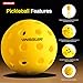 ✅【Suitable for All Courts & Paddles】Designed to meet the needs of all levels of players from beginners to experts, the bright yellow color makes the balls easy to spot, even in strong sunlight or dim light, suitable for any court(outdoor/indoor) and any paddles(wooden/graphite/fiberglass).