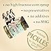 FEATURES: Our artisan-crafted kosher pickles are vegan, gluten-free, low carb, sugar-free, fat-free and cholesterol-free. Made with premium, non-irradiated spices; do not contain additives or artificial preservatives. Non-GMO Project Verified.