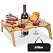 A MUST HAVE FOR PICNIC - Are you always looking for a portable & compact table that can hold your snacks, wine glasses, and a bottle of wine steadily? The wine picnic table is your best choice. A must-have for picnic, outdoor concert, camping, pool, boat, beach, or indoor bed serving tray.