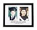Words below the photos read "our graduate then and now" In black text. This school picture frame is a great gift for a graduation party or recent graduate