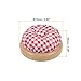 Pin Cushion with Wooden Base: Pincushions have a beautiful solid wood base for stability and are made with 100% cotton fabric. They are 2.5 inches in diameter- cute and perfect for tucking away in your sewing box.