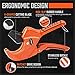 【20% Labor-saving Blade】Equipped with a V-shaped pipe blade with teflon coating, this pipe cutters boasts extremely smooth sliding, rust resistance and durability. On average, the cutting load is reduced by 20% versus with a blade with a typical coating. Heat-treated blades are not easy to rust or break and stay sharp in the harshest environments. Tool-free blade change is available. See ASIN: B0B5ZYBR1C