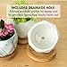 【LEAK-FREE SUCCULENT POT】: Ceramic succulent pot with drainage hole and removable bamboo saucer, breathable for plant growth and no worry the mud leaking out when water your cute succulent.