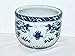 The scene wraps around the entire bowl. This is done in Oriental blue on a white glazed pot.