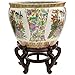 (1) 6" Decorative Double Themed Oriental Fish Bowl Planter with wooden Stand