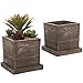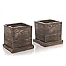 A set of 2 cement planters featuring a brown finish and a wood-grain texture