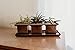 Set of three small succulent pots with tray for succulent plants. Copper Finished indoor planters, handcrafted from stainless steel with an antique copper finish and clear lacquer top coat. Perfect for succulent plant decor or a kitchen windowsill herb garden.