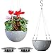 SELF-WATERING DESIGN - The hanging planter comes with a footed water tray placed in the bottom of the pot. This raises the base, creating a water reservoir underneath to provide optimal moisture for your plants. It prevents root rot by ensuring your plants do not sit in water and have adequate air circulation in the soil. The RAISED DRAINAGE HOLE helps you avoid overwatering and releases the excess water keeping your soil optimally moist. Grow strong healthy plants with minimal care!