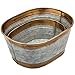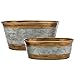 Set of 2 silver metal tub style planters with rustic galvanized finish and vintage copper tone rims