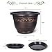 【EXCELLENT DRAINAGE AND TRAY】These lightweight plastic Retro engaving pots for plants come with multiple drainage holes in the bottom to let exceed water easily flow out to help prolong the life of your plants, and the saucers are provided to hold just the right amount of water. Our classic 3 packs of 10 inch plastic flower planter could create a healthy living environment for your indoor and outdoor plants