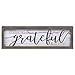Features sentiment that reads “Thankful grateful and blessed”; Slate grey finish frame and white distressed backdrop paired with sentiment of hope and inspiration