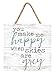 Features sentiment that reads “You make me happy when skies are grey”; Distressed whitewash finish and creative accents paired with sentiment of hope and inspiration
